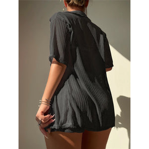 Genießen Sie die Wärme der Sonne mit dieser bezaubernden kurzärmeligen Häkeltunika, die eine wunderbare Ergänzung für jedes Strandensemble für Frauen ist, die sowohl Komfort als auch Stil schätzen. Dieser gestrickte Überwurf für die Größen S bis XL zeichnet sich durch ein luftiges Häkelmuster aus, das den Blick auf Ihren Badeanzug freigibt und gleichzeitig ein luftiges Gefühl vermittelt. Die kurzen Ärmel und die kurze Länge machen es zu einem verspielten und zugleich eleganten Strandkleid, das sich perfekt für Spaziergänge am Meer oder für die Freizeitgestaltung am Urlaubsort eignet.