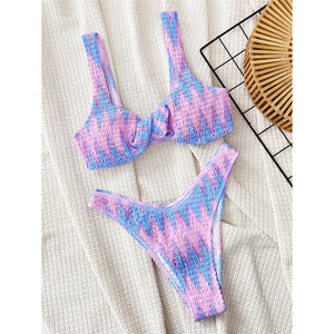 Embrace bold colors and texture with our Tie Dye Crinkled Brazilian Bikini Set. This two-piece swimwear combines a unique tie-dye pattern with a crinkled texture, designed to offer a flattering and eye-catching look for your beach or pool outings.