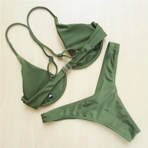 Entdecken Sie die perfekte Mischung aus Halt und Stil mit diesem Bikini-Set mit Bügeln in den Größen S bis XL. Das V-Bügel-Design sorgt für Auftrieb und Form, während der V-förmige Draht die Konturen Ihres Körpers ergänzt. Dieser anspruchsvolle und bequeme zweiteilige Badeanzug ist eine schicke Wahl für den Pool oder den Strand und sorgt dafür, dass Sie so gut aussehen, wie Sie sich fühlen.
