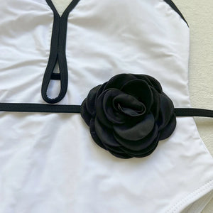 Umarmen Sie die Eleganz mit unserem exquisiten einteiligen Badeanzug mit V-Ausschnitt und Neckholder. Dieser rückenfreie Monokini verfügt über wunderschöne 3D-Blumengürtel-Details, die Ihrem Strand-Look einen Hauch von Raffinesse verleihen. Die perfekte Wahl für alle, die Wert auf Stil und Komfort in ihrer Bademodenkollektion legen.