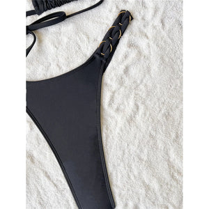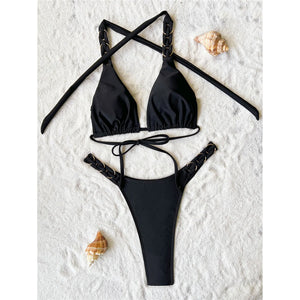 Elevate your swimwear collection with this halter high leg cut bikini set. Designed with a mini thong style, it offers a bold and confident look perfect for beach or poolside adventures. The halter neckline provides a chic touch, making this two-piece bikini an essential for sun-soaked days.