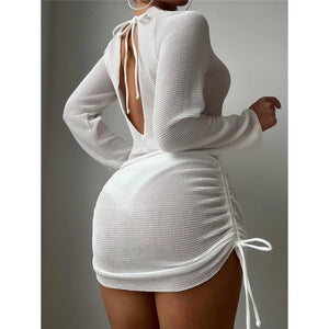 Wir stellen Ihnen unsere langärmelige, rückenfreie Häkeltunika vor, den ultimativen Strandüberwurf, erhältlich in den Größen S bis XL. Dieses exquisite Kleidungsstück ist sorgfältig aus Häkelstrick gefertigt und lässt einen Blick auf Ihre stilvolle Bademode zu, während es genau die richtige Menge an Bedeckung bietet. Das rückenfreie Design strahlt Eleganz aus und die langen Ärmel bieten Schutz vor der Sonne, so dass es eine perfekte Mischung aus Mode und Funktion für Ihre Abenteuer am Meer ist.