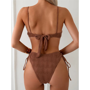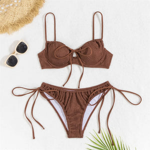 Wrinkled Underwired Knotted Bikini Set