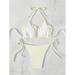 Unleash your inner fashionista with this stunning 3D flowers halter strappy bikini. Featuring intricate floral detailing and a stylish high cut, this two-piece swimsuit is designed to flatter and accentuate your natural curves. The halter neck and strappy details add a touch of elegance and modern sophistication, making it an ideal choice for making a splash in style at the beach or pool.