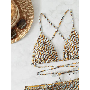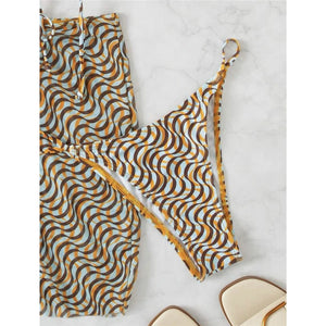 Rock the beach in this Bikini Set with Skirt and Hairband! Made with Nylon and Spandex for a comfy fit, it's perfect for any beach day. No wires, low waist, playful print, and padding. Get yours now!