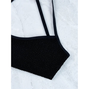 Dieses Bikini-Set zeichnet sich durch eine stilvolle Knitterstruktur aus, die Ihrer Bademodenkollektion einen einzigartigen Touch verleiht. Das hochgeschnittene Design betont Ihre Beine, während die gekreuzten Rückenträger sowohl Halt als auch einen eleganten Look bieten. Perfekt für alle, die eine Mischung aus Komfort und schickem Stil lieben, ist dieses zweiteilige Set ein Must-have für Ihren nächsten Strandtag.