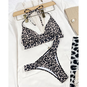 Faites sensation avec notre ensemble de bikini léopard à bretelles et dos nu, un deux-pièces audacieux qui est à la fois charismatique et confortable. L'imprimé léopard audacieux vous permet d'embrasser votre côté sauvage, tandis que le dos nu à bretelles offre un effet flatteur grâce à son design rembourré. Idéal pour celles qui souhaitent ajouter une touche d'exotisme à leurs maillots de bain, cet ensemble de bikinis est sûr de rehausser votre présence sur la plage avec assurance et style.