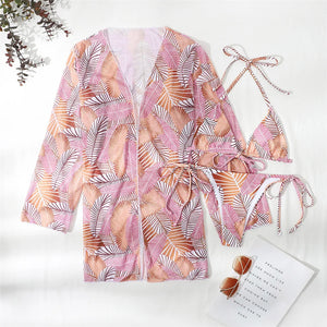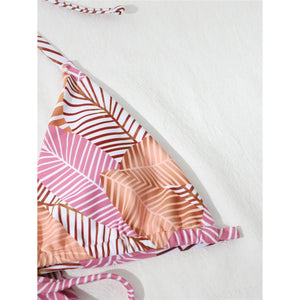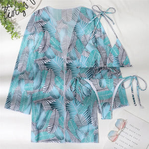 Plongez dans une évasion tropicale avec cet ensemble de bikini imprimé de feuilles, conçu avec une couverture chic pour vous emmener du bord de l'eau à un coucher de soleil dans un style sans faille. L'ensemble trois pièces promet polyvalence et flair pour vos aventures estivales. Le motif de feuilles vibrant dégage une atmosphère à la fois ludique et sophistiquée, tandis que le design bien pensé offre une large couverture sans compromettre la féminité et le charme.