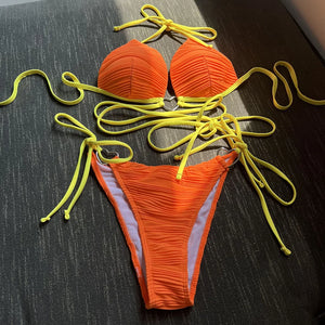 Découvrez un mélange parfait de style et de confort avec notre ensemble de bikini Wrap Around Halter Wrinkled. Cet ensemble deux pièces chic est doté d'un dos nu enveloppant, ce qui assure une coupe flatteuse pour tous les types de corps. La texture ridée unique ajoute une touche contemporaine au bikini classique, tandis que l'ensemble offre une grande souplesse pour se prélasser au bord de la piscine ou s'adonner à des activités de plage.