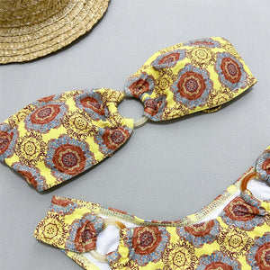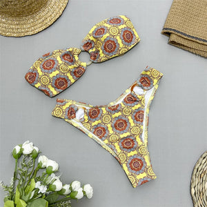 Printed Bandeau Brazilian Bikini