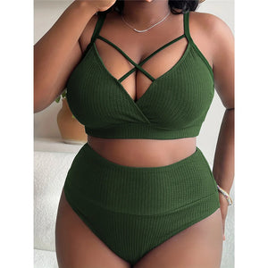 Step into the spotlight with our flattering ribbed two-piece bikini set, beautifully tailored for sizes ranging from 0XL to 4XL. This stunning collection is a celebration of style and comfort, designed to complement your shape with its textured appeal and snug fit. Prepare to make waves and capture the essence of beachside chic with this must-have summer staple.