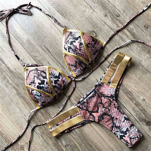 Sexy Bikini Push Up Deep V Swimsuit Female Hollow Out Bathing Suit Women Taille : Taille basseType de support : Sans filAvec tampon : OuiType de motif : Print,LeopardModel Number: Bikini SetMatériau : Polyester,SpandexBrazilian size: S M L