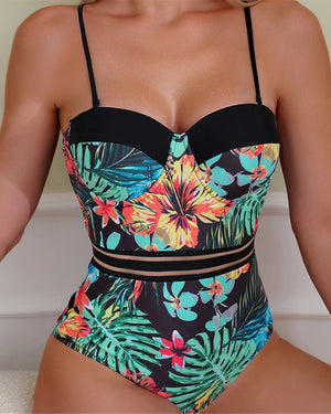 Immerse yourself in tropical vibes with this Leaves Printed Monokini. Featuring a vibrant leaf print, this chic monokini offers a seamless blend of style and comfort. Ideal for making a statement at the beach or pool, it's designed to accentuate your silhouette beautifully.
