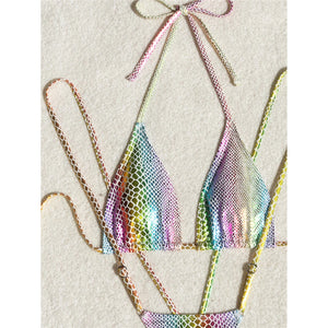 Colorful Halter Thong Bikini