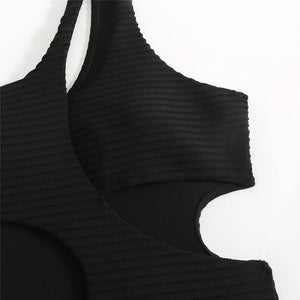 Embrace unique style with our cut out asymmetric one shoulder one piece swimsuit. This high leg cut design offers both elegance and boldness, featuring strategic cut outs and a padded fit for maximum comfort and support. Perfect for those who love to make a fashion statement on the beach or poolside.