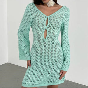 Il nostro copricostume a tunica senza schienale con maniche lunghe è l'epitome dell'eleganza in spiaggia. Questo splendido capo è disponibile con un design a maniche lunghe che vi offre copertura e protezione dal sole, pur mantenendo un'aria sofisticata. Il modello senza schienale e gli intricati dettagli cut-out creano un look seducente e arioso, che lo rende perfetto per le giornate miti in riva al mare. Il tessuto in maglia all'uncinetto è morbido sulla pelle e assicura il massimo comfort durante il relax o una piacevole passeggiata sulla sabbia. Con il suo drappeggio senza sforzo e la sua silhouette chic, questo abito da spiaggia è un'aggiunta essenziale al vostro ensemble per le vacanze.