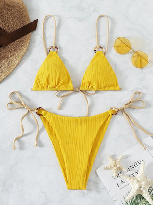 Immergetevi nello stile con il nostro set di bikini brasiliano imbottito a coste, realizzato per le amanti della spiaggia alla moda. Questo lussuoso due pezzi accentua la vostra silhouette grazie alla sua vestibilità comoda e alla parte superiore imbottita per il massimo comfort e sostegno. Il taglio brasiliano offre un'allure giocosa, rendendolo un must della vostra collezione di costumi da bagno.