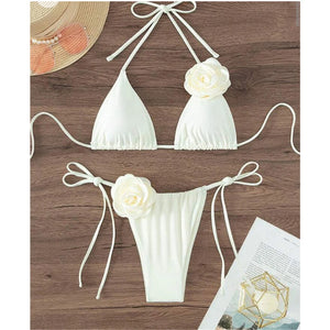 Bikini con spalline ad aletta con fiori 3D