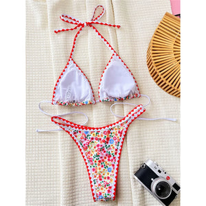 Sbocciate in questa stagione con un set bikini con stampa floreale che incarna lo spirito dell'estate. Pensato per le donne che adorano le fantasie vivaci, questo due pezzi presenta un taglio brasiliano per esaltare le vostre curve e un top con cavezza per fornire un sostegno regolabile. Perfetto per prendere il sole, questo bikini è una celebrazione del divertimento e della femminilità, disponibile nelle taglie dalla S alla XL.