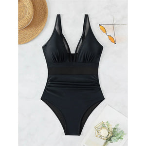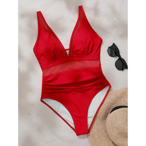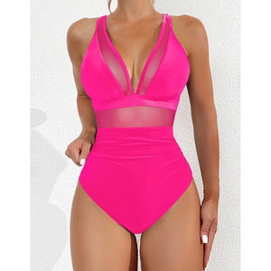 Step into the wild side with our Mesh Sheer V Neck Leopard Printed One Piece Swimsuit, offering sizes from S to XL for the perfect fit. This monokini captivates with its sheer mesh detailing and bold leopard print, creating a look that's both exotic and elegant. The deep V neck accentuates your form, combining with a silhouette that flatters every curve. Embrace your inner feline and make a striking impression whether you're lounging by the pool or making waves at the beach.