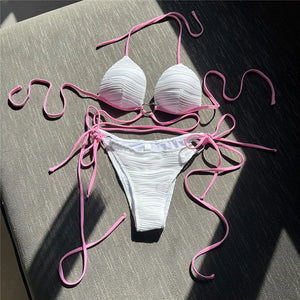 Scoprite un mix perfetto di stile e comfort con il nostro set bikini Wrap Around Halter Wrinkled. Questo elegante completo a due pezzi è caratterizzato da un design avvolgente che assicura una vestibilità perfetta per tutti i tipi di corpo. L'esclusiva texture stropicciata aggiunge un tocco contemporaneo al classico bikini, mentre il set offre flessibilità sia per il relax in piscina che per le attività in spiaggia.