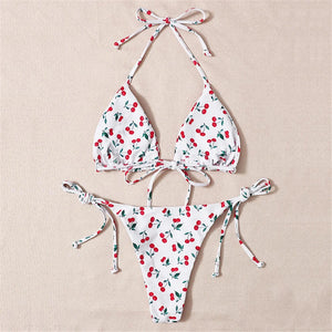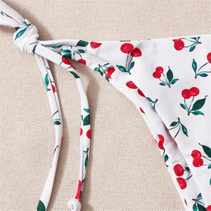 Sweeten your poolside look with our Cherry Printed Halter Strappy Bikini Set. Available in sizes XS through L, this delightful two-piece swimsuit features a charming cherry print that adds a playful touch. The halter neckline and strappy details create a captivating silhouette, while the bikini offers a perfect fit for those carefree summer days. Dive into style with this fruity and fashionable choice.