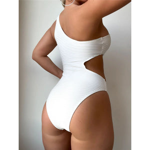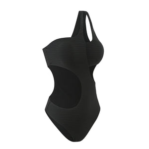 Embrace unique style with our cut out asymmetric one shoulder one piece swimsuit. This high leg cut design offers both elegance and boldness, featuring strategic cut outs and a padded fit for maximum comfort and support. Perfect for those who love to make a fashion statement on the beach or poolside.