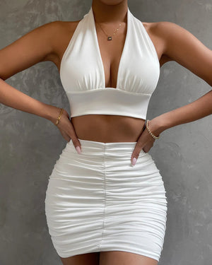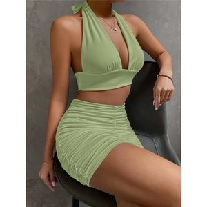 Elevate your party wardrobe with this chic ruffle mini dress set. Featuring a flattering bodycon fit, this set includes a stylish top and a complimentary summer skirt. Perfect for any event, this ensemble combines elegance with a trendy twist, ensuring you turn heads at every occasion.