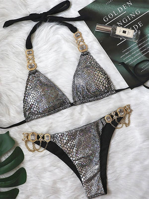 Indulge in the opulence of our Jeweled Rhinestones Luxury Diamond Bikini Set, a swimwear masterpiece designed to sparkle under the sun. Each piece is meticulously adorned with shimmering rhinestones that catch the light with every move, embodying luxury and glamour. The bikini's design flawlessly combines fashion-forward aesthetics with comfort, ensuring you feel like a gem at any poolside gathering or beach excursion.