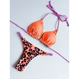 Affrontate la stagione estiva con il nostro bikini halter con stampa leopardata, un set a due pezzi di grande impatto. Questo costume da bagno presenta un allettante dettaglio sul sedere che esalta le vostre curve, mentre la scollatura a cavezza offre una vestibilità regolabile e confortevole. Perfetto per chi vuole mostrare il proprio lato selvaggio, questo bikini sarà sicuramente il pezzo forte del vostro repertorio di costumi da bagno.