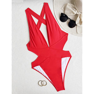Deep V Neck Cross Back Swimsuit