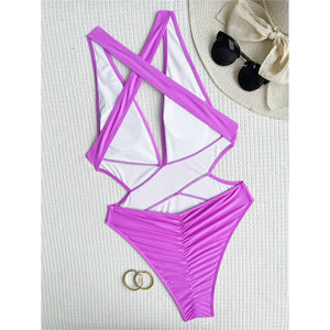 Make a splash with this deep V-neck cross back one-piece swimsuit. The high-leg cut and scrunch butt design enhance your silhouette, while the cross back adds a touch of elegance. Ideal for beach days or relaxing by the pool, this swimsuit combines style and comfort in a flattering fit.
