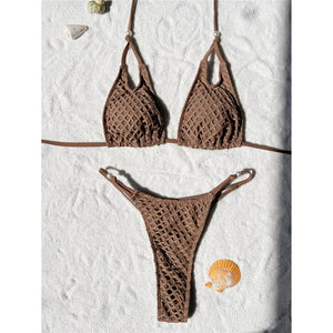 Unleash your edgy style with this mesh fishnet halter bikini set. The high-cut design offers a modern and daring look, while the mesh fishnet detailing adds a unique flair. Perfect for making a statement at the beach or pool, this two-piece bikini combines boldness with contemporary fashion.