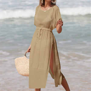Entrate nel sole con la nostra tunica da spiaggia a maniche corte con spacco alto in maglia all'uncinetto. Questo grazioso capo vanta uno splendido design a maglia all'uncinetto impreziosito da uno spacco alto che migliora la mobilità e aggiunge un pizzico di fascino. Le maniche corte danno un tocco di eleganza, ideale per chi cerca protezione solare e stile. Perfetto per essere drappeggiato sopra il costume da bagno, questo copricostume offre un modo sofisticato per passare dalla spiaggia al brunch con facilità.