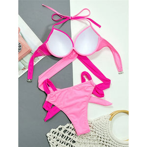 Embrace a sophisticated beach look with our Splicing Halter Underwired High Cut Bikini Set. This two-piece swimwear offers excellent support with an underwired halter top, and a high cut design for a flattering silhouette, perfect for making a stylish statement by the water.