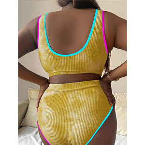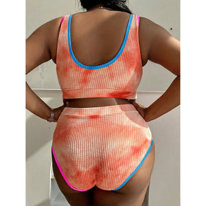 Dive into vibrant colors with this exquisite tie-dye bikini, tailored for those who appreciate a blend of fashion and function. Crafted specifically for larger sizes, this two-piece bikini set offers both comfort and a secure fit without compromising on style. Let the radiant patterns reflect your inner glow as you embrace the sunshine and enjoy every moment by the water.