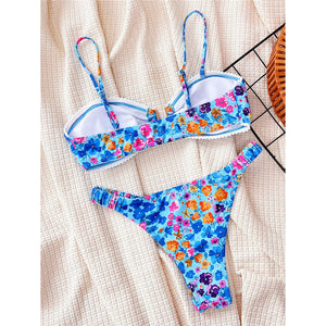 Elevate your beach look with this chic U-neck bikini set, featuring a charming floral print and an appealing wrinkled design. Perfect for those sun-soaked days, this two-piece is both fashionable and comfortable, allowing you to make a splash in style.